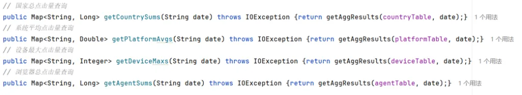 我们在HBaseDataReader通过构建多维度的数据查询引擎,封装了从HBase中读取四种聚合结果的统一接口。通过日期传参可获取当天的多维度数据内容。