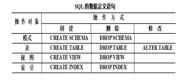 SQL的数据定义功能:模式定义、表定义、视图和索引的定义
