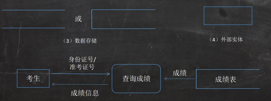 (4)外部实体:外部实体是指存在于系统之外的人员或组织或其它系统,它指出系统所需数据的发源地和系统所产生的数据的归宿地。