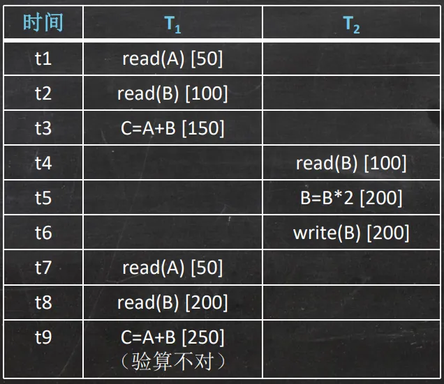 • 幻读也称幻影现象。事务T1读取数据后,事务T2执行插入或删除操作,使T1无法再现前一次读取结果
