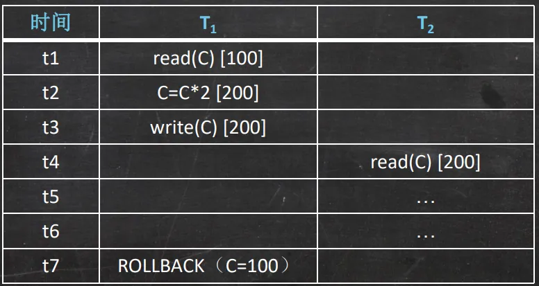 • 事务回滚并且数据库恢复到事务开始执行前的状态。