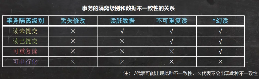 在SQL标准中给出了事务的4类隔离级别,由低到高依次如下:
