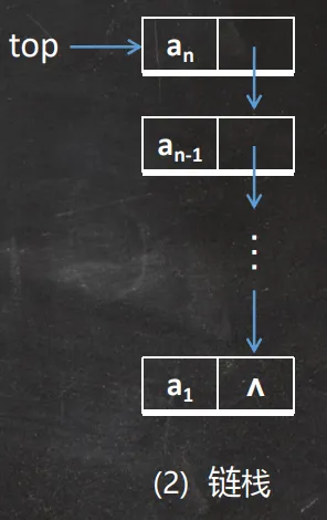 栈中元素的插入和删除仅在栈顶进行,因此不必设置头节点,链表的头指针就是栈顶指针