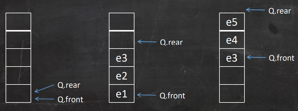 • 队列是一种“先进先出”的线性表,队尾入 队头出