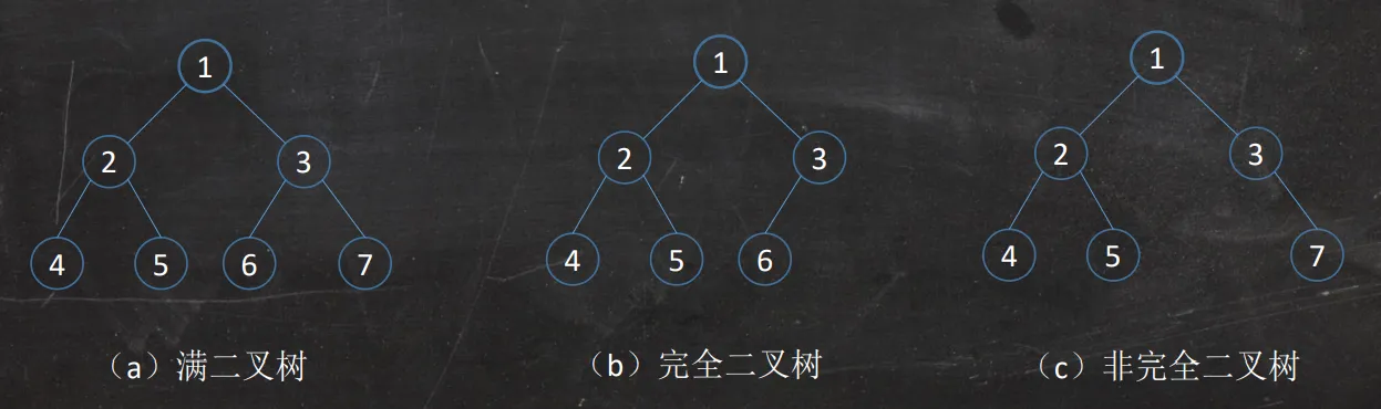 完全二叉树:当深度为k、有n个结点的二叉树,当且仅当其每一个结点都与深度为k的满二叉树中编号为1~n的结点一一对应时,称之为完全二叉树。