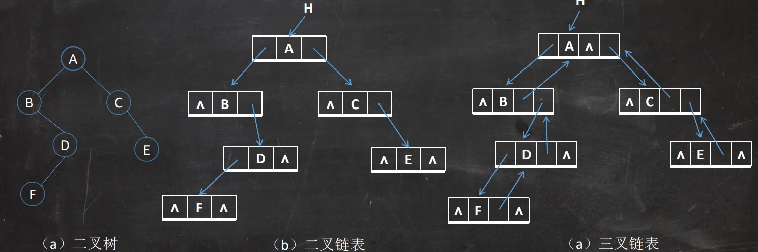 三叉节点:左指针域 | 节点内容 | 右指针域 | 父节点域