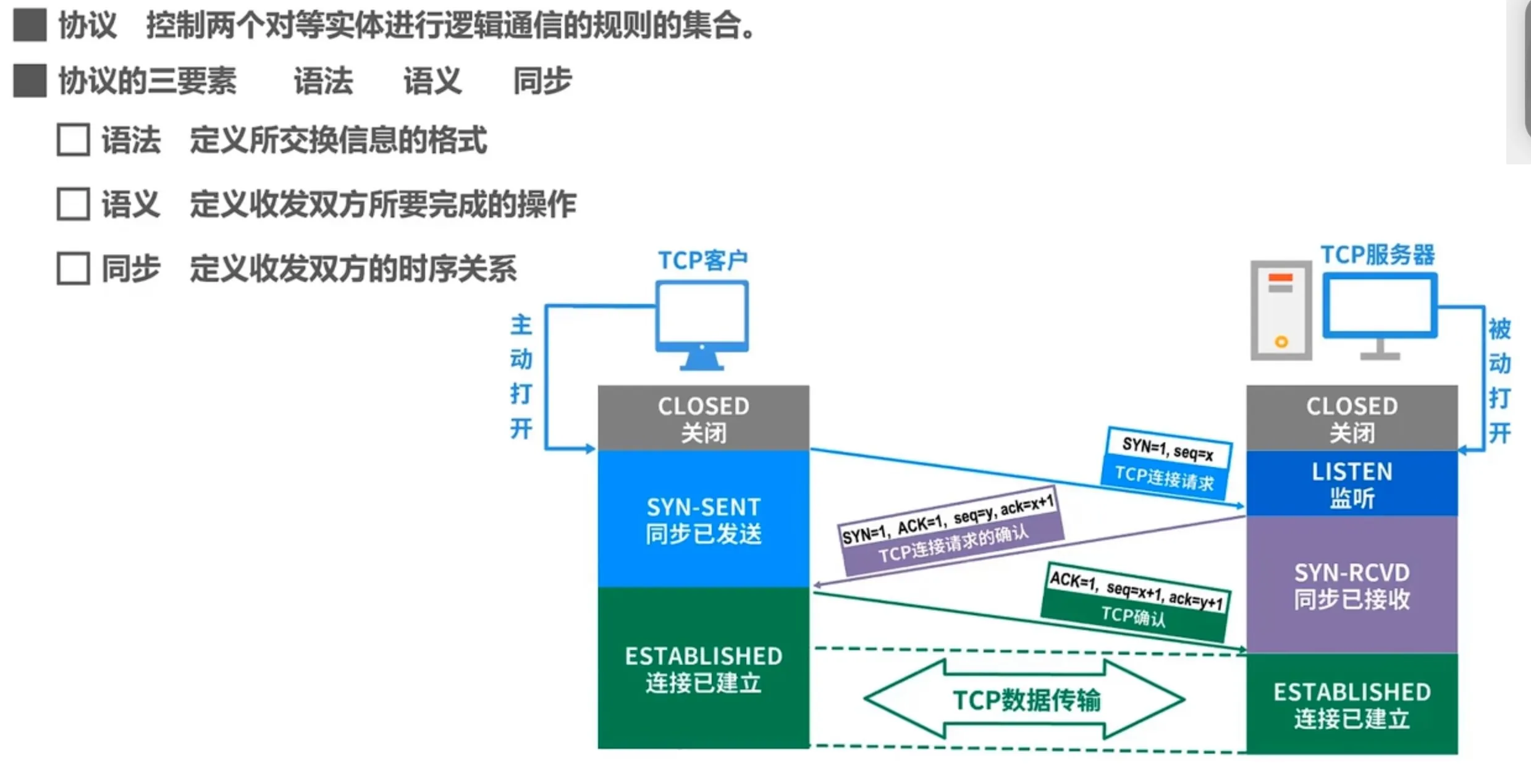 ■协议:控制两个对等实体进行逻辑通信的规则的集合