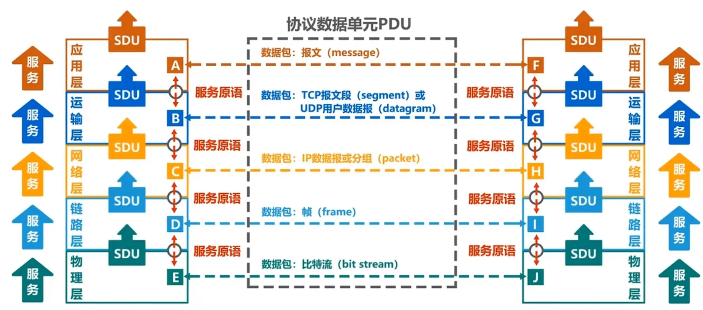 ■协议数据单元PDU:对等层次之间传送的数据包称为该层的协议数据单元