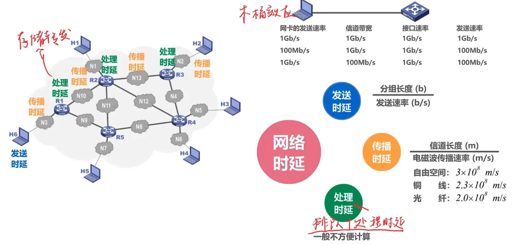 速率,带宽,吞吐量,时延,时延带宽积,往返时间,利用率,丢包率