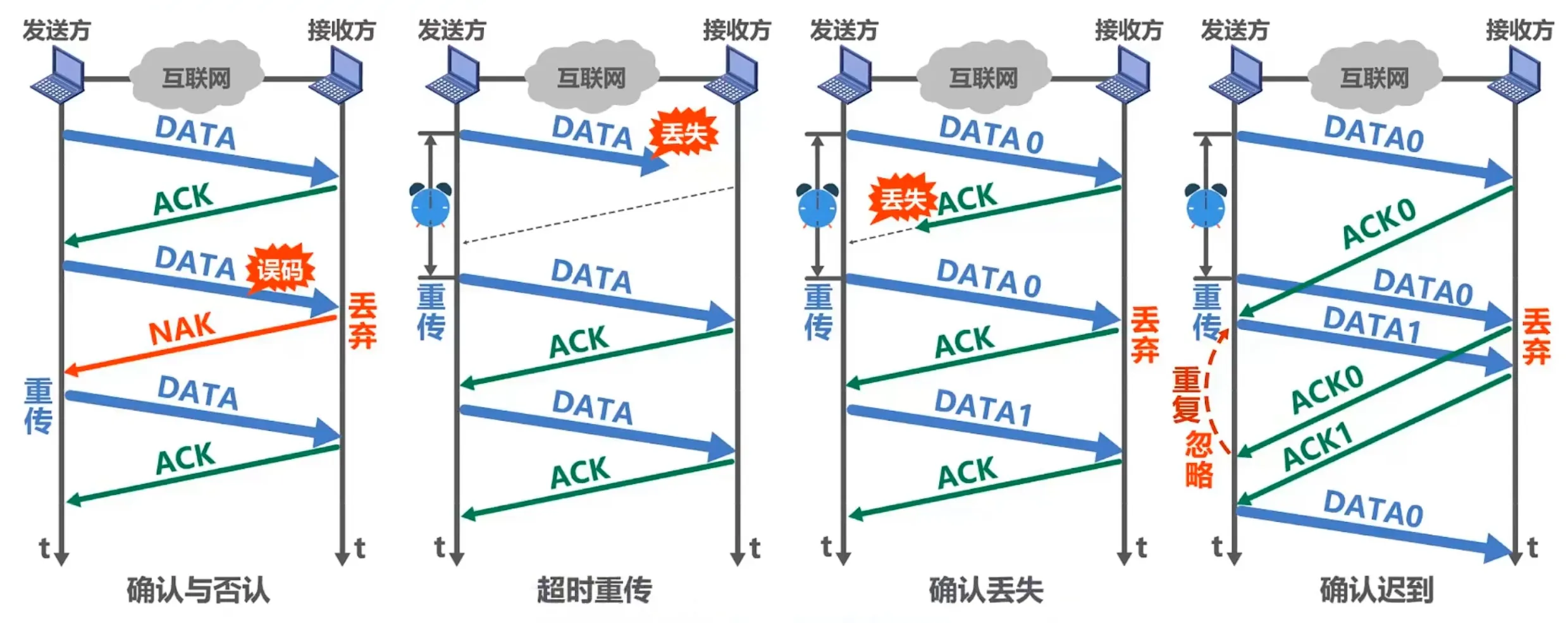 ■这种通信方式如果再使用可靠传输的网络协议,就可使所发送的分组最终正确到达接收方(无差错按序到达、不丢失、不重复)