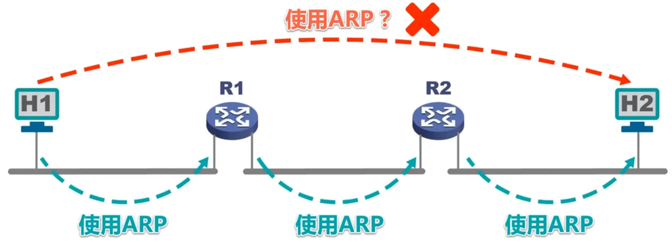 ARP协议的使用是逐段链路进行的,ARP协议只能在一段链路或一个网络上使用。