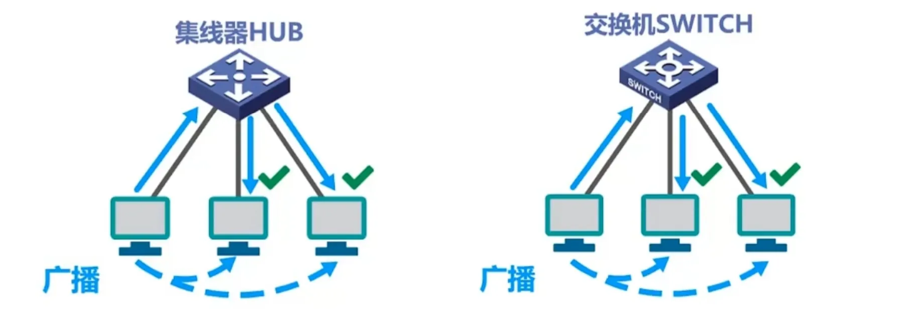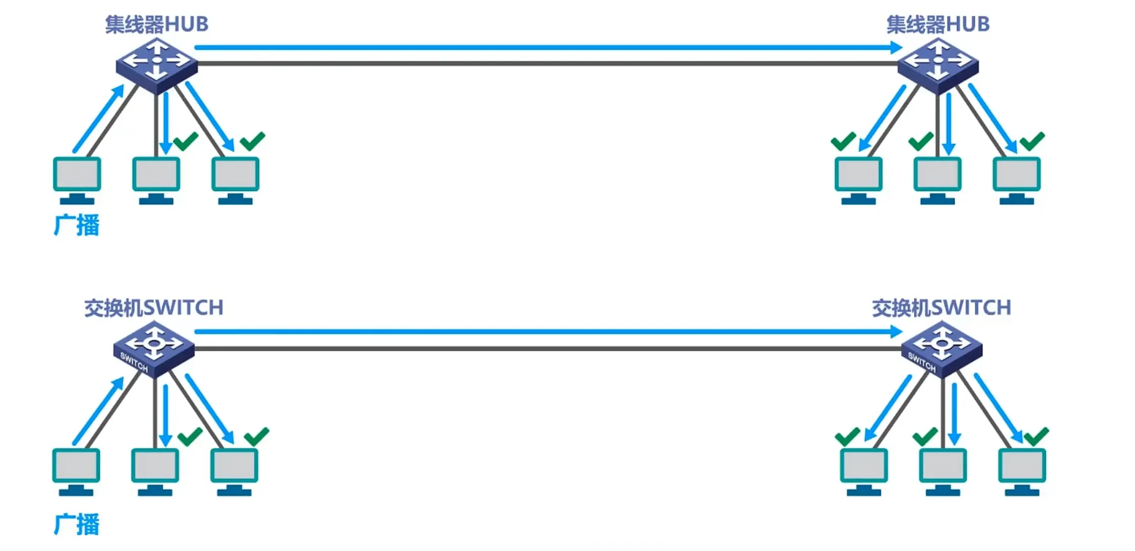 3.对于二者扩展以太网进行发送广播帧,无显著差别