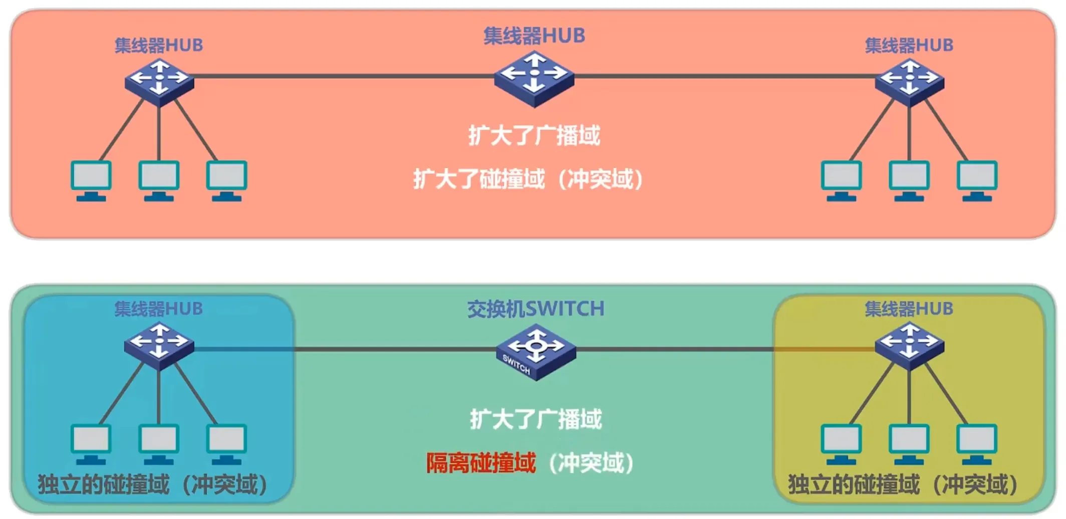 5.对于二者扩展以太网进行竞争总线,交换机对比集线器有显著优势