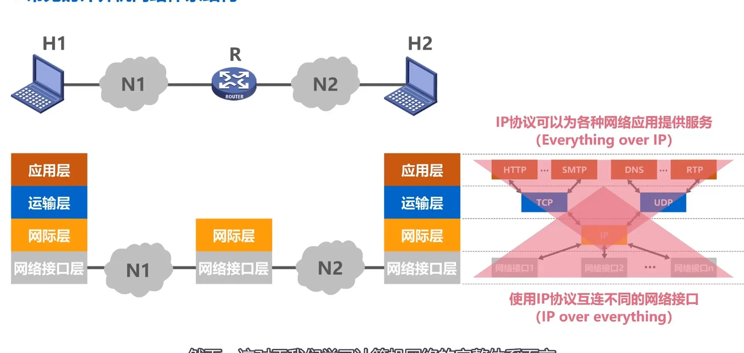 网络层:实现网络互连,进而实现数据包在各网络之间的传输