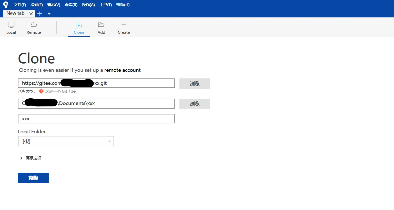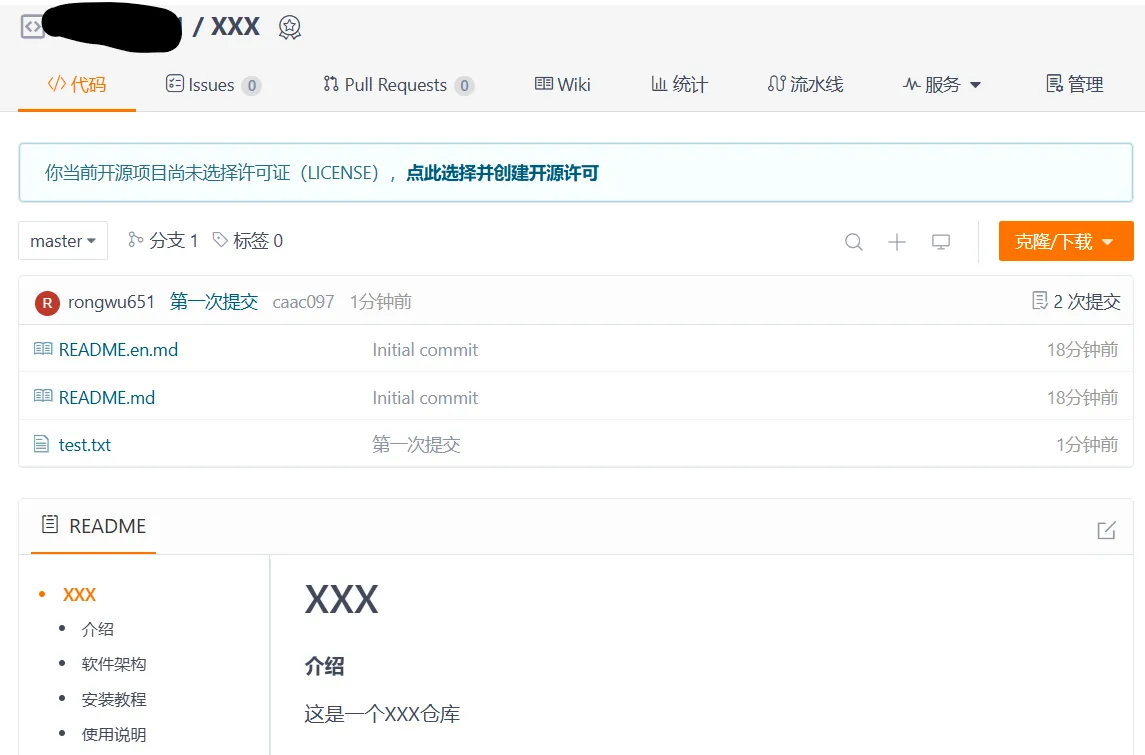 复制仓库的HTTPS链接克隆仓库后,将会生成对应的文件夹