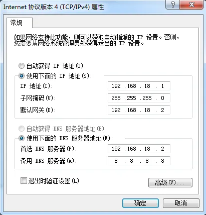 子网IP:在IP的规则范围内,什么数字都可以,但一般家庭网段中的IP地址 可能是 1,因此倒数第二个数字,只要避开1就可以,这里使用的是18