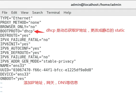 vim /etc/sysconfig/network-scripts/ifcfg-ens33