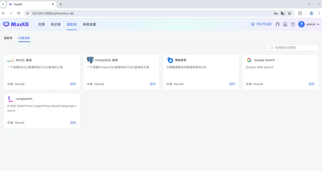 官方提供不同历史版本的MaxKB,这里选择官方提供Mysql内置连接函数的v1.10.3-lts版本