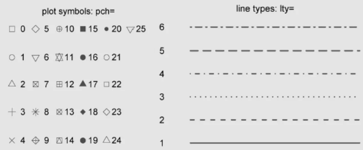 lty=c(1, 2,3,4,5), pch=c(15,16,17),