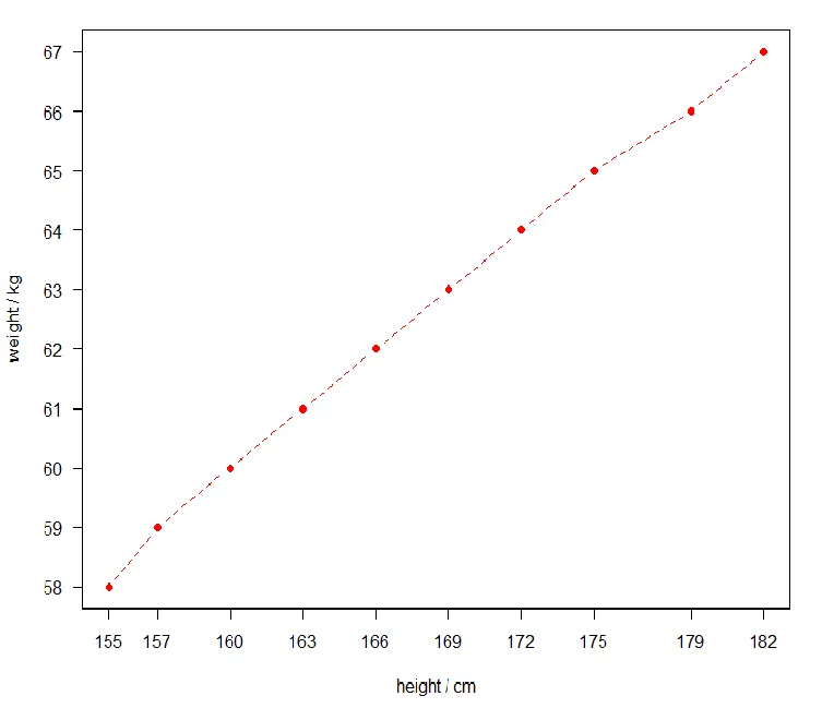 散点图通常用来描述两个连续型变量间的关系,绘制基本散点图使用plot()函数
