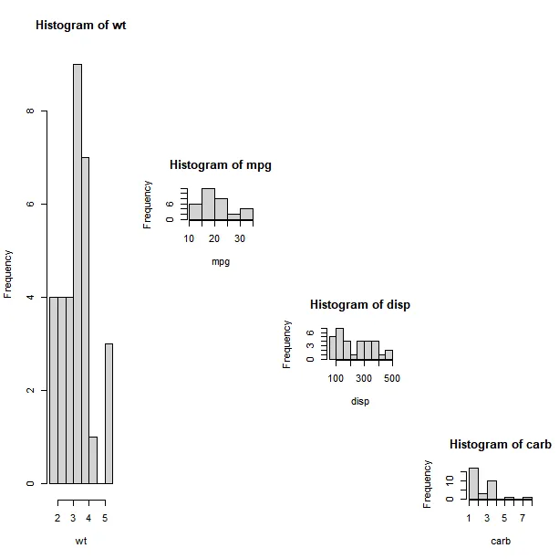 在R中,可以使用**函数par()或layout()**将多幅图形组合为一幅图形