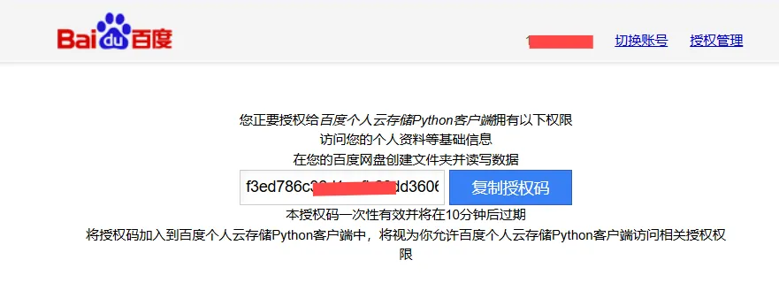 当显示 Successfully authorized 和网盘存储情况,即为成功