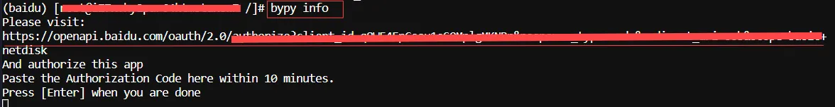 yum install -y screen 用于进程守护yum install -y aria2 用于下载加速pip install bypy 用于连接百度网盘登录百度网盘